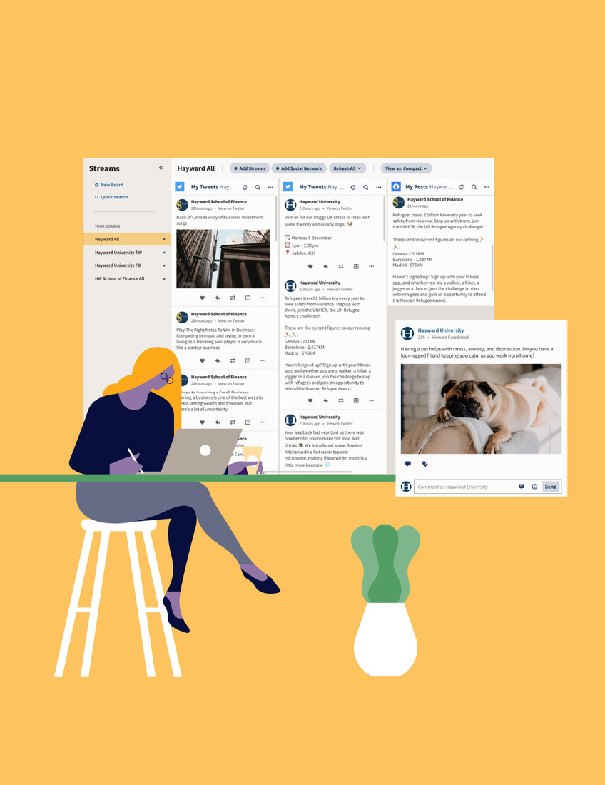 Mais pas de panique, sachez qu’aujourd’hui il existe des outils qui vous permettent d’élaborer une stratégie réseaux sociaux très facilement. C’est le cas de Hootsuite, cette plateforme communautaire tournée vers l’interaction et l’écoute sociales vous permet gérer jusqu’à 35 pages/profils, de créer, de publier, de programmer des publications et d’effectuer une veille via des mots-clés, des hashtags ou encore des mentions.